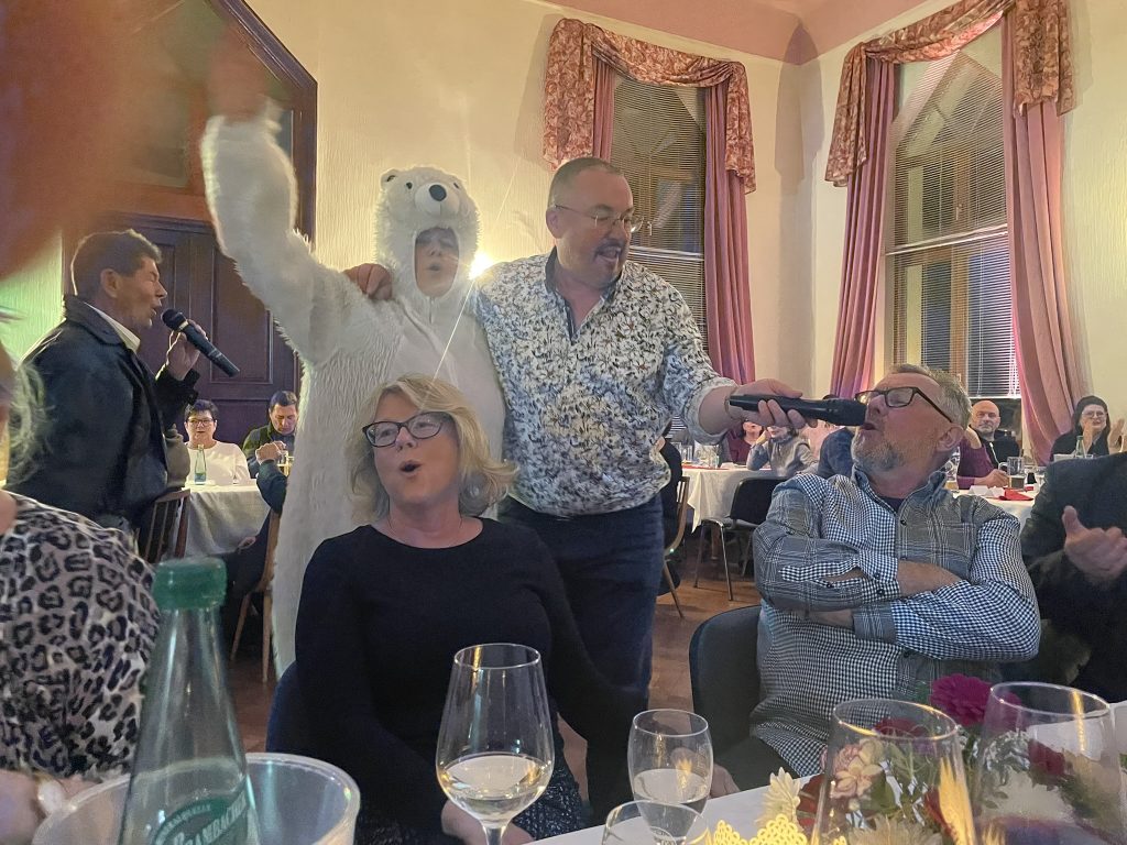 Feier zum 60. Geburtstag von Silvio Grimm in der Gippenschänke mit Kultureinlagen und Dichtungen des Sen. Arnold Grimm